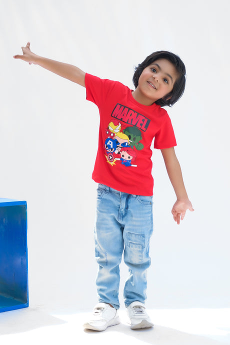 Marvel Half Sleeves T-shirts For Kids - Red - SBT-334