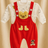 Baby Dungaree Set with Bear Applique & Printed Inner Tee
