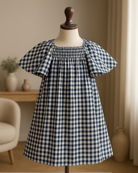 Little Cotton Gingham Dress For Girl