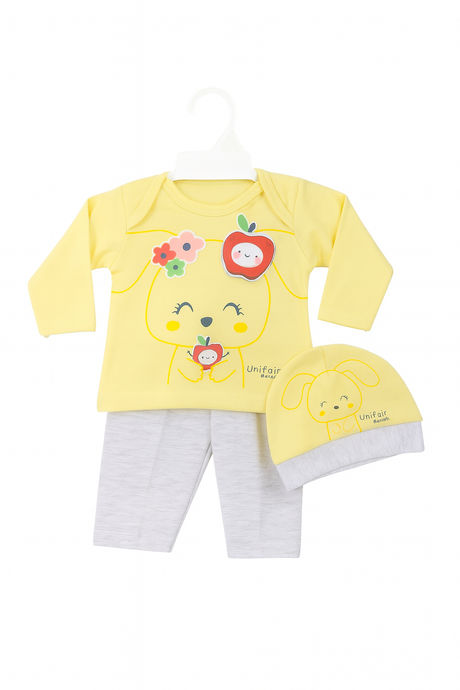 3 Pcs Baby Outfit Set – Bunny Print Top, Pants & Hat
