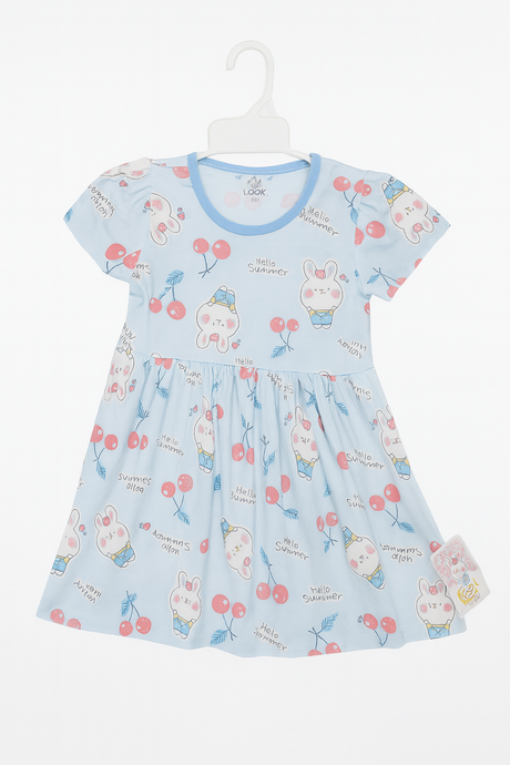 Light Blue "Hello Summer" Bunny Print Girls Dress
