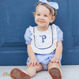 3pcs Baby Girl Letter Embroidered Square Neck Plaid Top and Shorts and Headband Set
