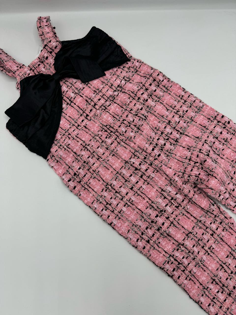 Baby Girl Bowknot Design Pink Tweed Sleeveless Jumpsuit