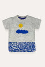 printed graphic tee in oatmeal soft cotton that is soft on your skin with print graphics perfect for a summer day. it entails a shoulder placket with contrast ring snap buttons to make it easily wearable for children.
