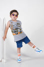 Giraffe & Rhino Ride Summer-Printed Sandos for Boys - Light Gray