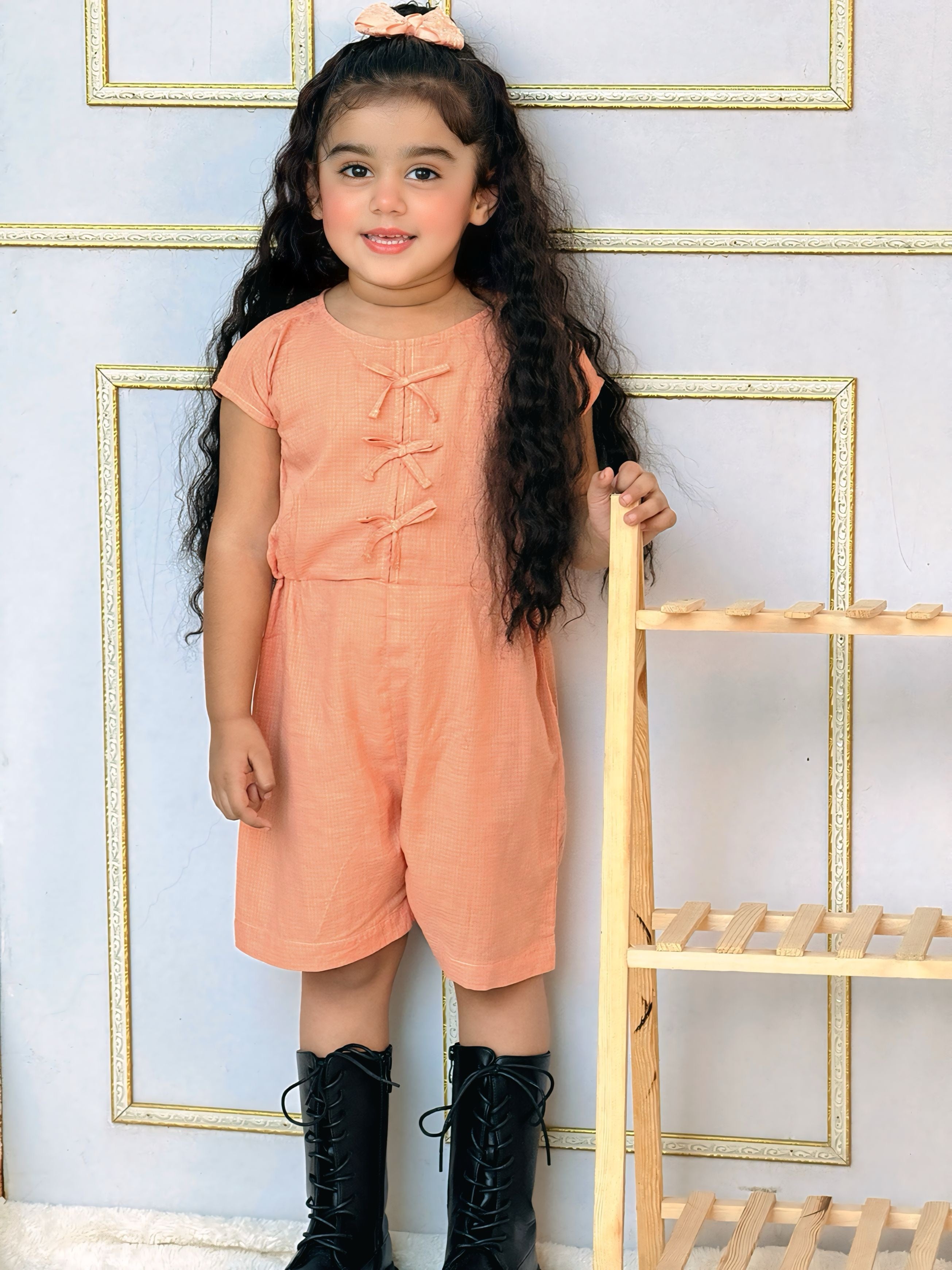 Coral Laces Sleeveless Cotton Baby Jumpsuit -Peach