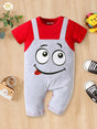 Dungaree Style Graphic Print Half Sleeve Romper Red