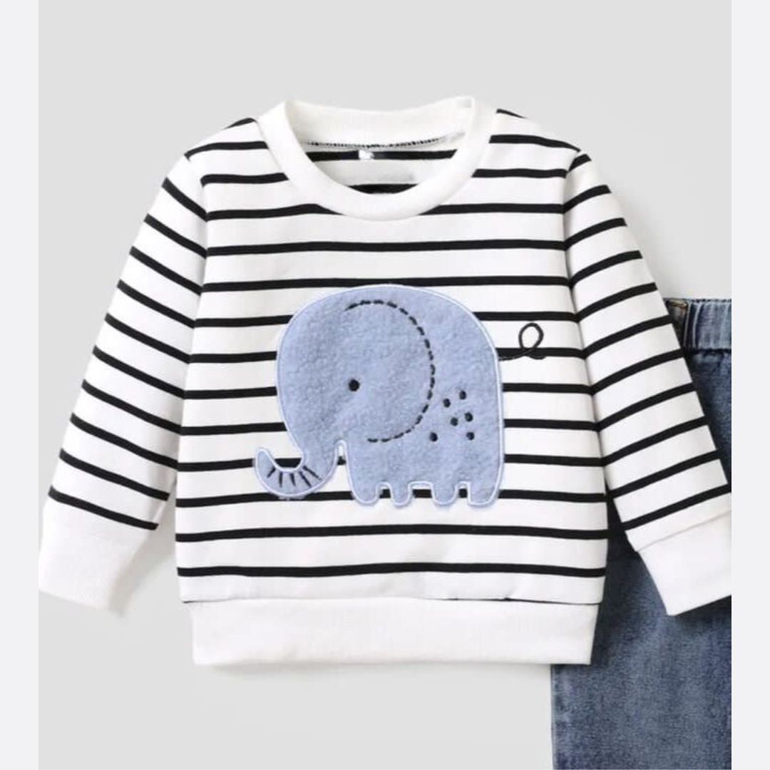 Keep your little one cozy and stylish with our Elephant Sweatshirt. Featuring a playful striped design and cute elephant detail, this sweatshirt adds fun and comfort to any outfit. Perfect for all seasons, it is a wardrobe must-have for kids.