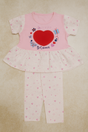 Dress your little one in comfort and cuteness with this 2-piece embroidered jersey set. Featuring a soft pink top with a bright red embroidered heart at the center, surrounded by playful blue butterflies and charming details, this outfit is perfect for everyday wear or special moments.