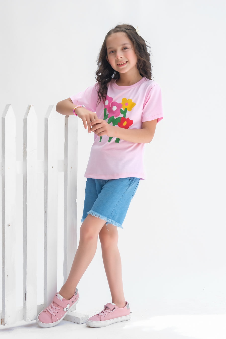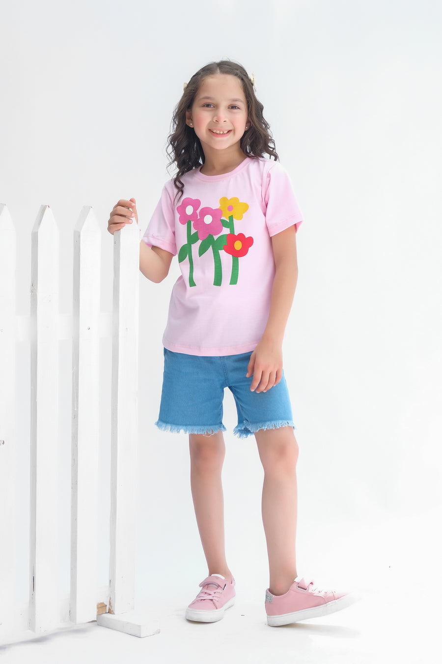 Flower - Half sleeves T-shirts For Kids - Pink - SBT-352