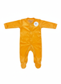Bright orange romper with floral frills, designed for both comfort and cheerful style.