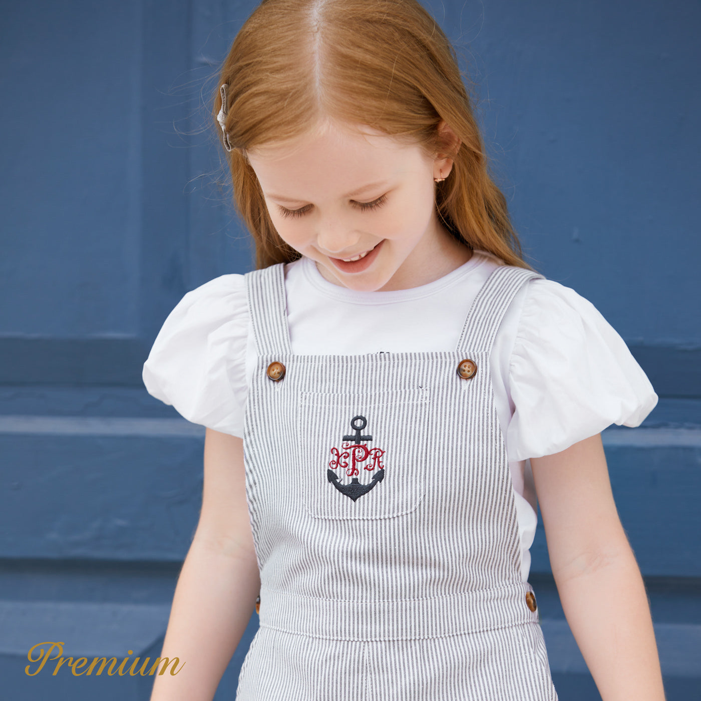 Toddler Girl/Boy Anchor Embroidered Patch Pocket Striped Overall Shorts