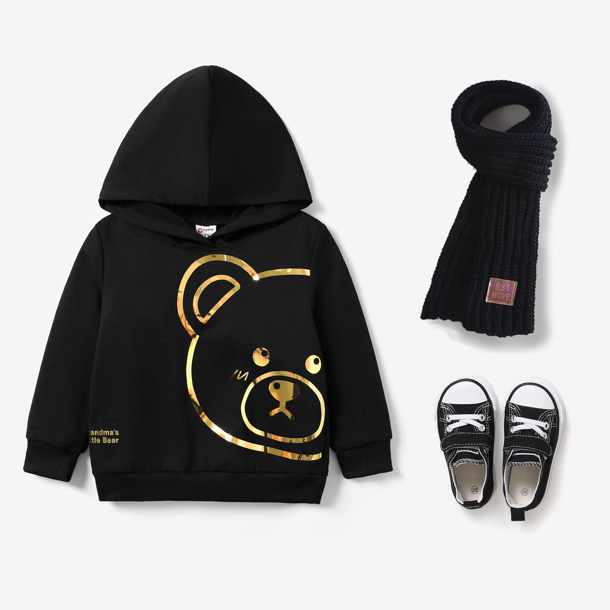 Toddler Girl/Boy Childlike Gold Bear Pattern Hoodie