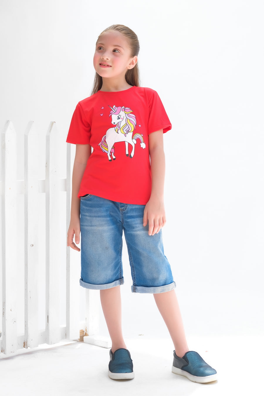 Unicorn - Half sleeves T-shirts For Kids - Red - SBT-348