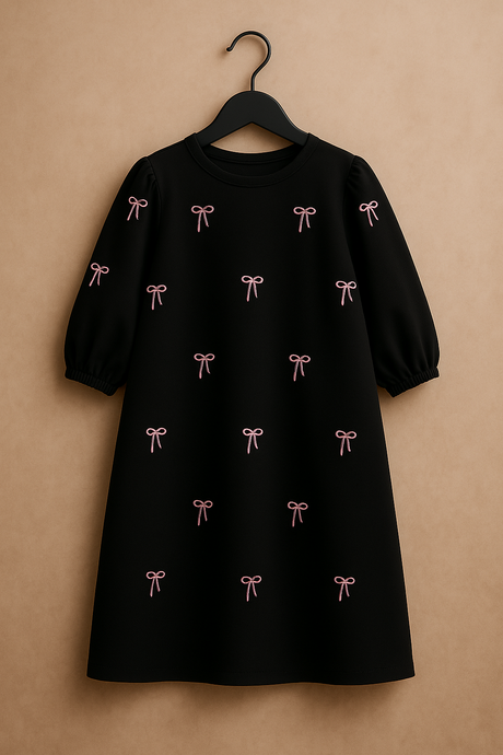 Elegant Black Abaya with Pink Bow Embroidery-Small