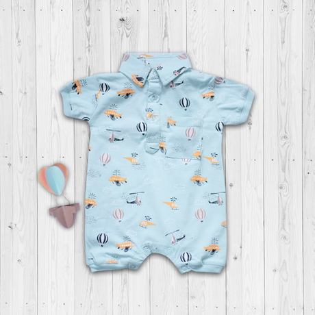 بیبی بوائے لیٹر/سٹرائپ پرنٹ شارٹ آستین کاٹن باڈی سوٹ