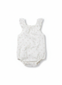 Adorable infant bodysuit with yolk sleeves and pink flower design.