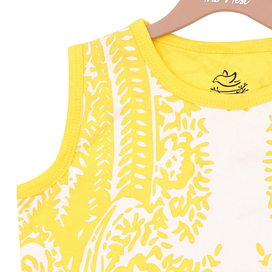 Featuring vibrant hues and elaborate print, our bohemian rhapsody frock is here to add some flair to your baby’s wardrobe. Crafted from soft and breathable single jersey fabric, the frock locks moisture out of the body to keep your baby’s skin protected against rash and soreness. The intricate details along with the groovy cut makes it all the more appealing to the eye.