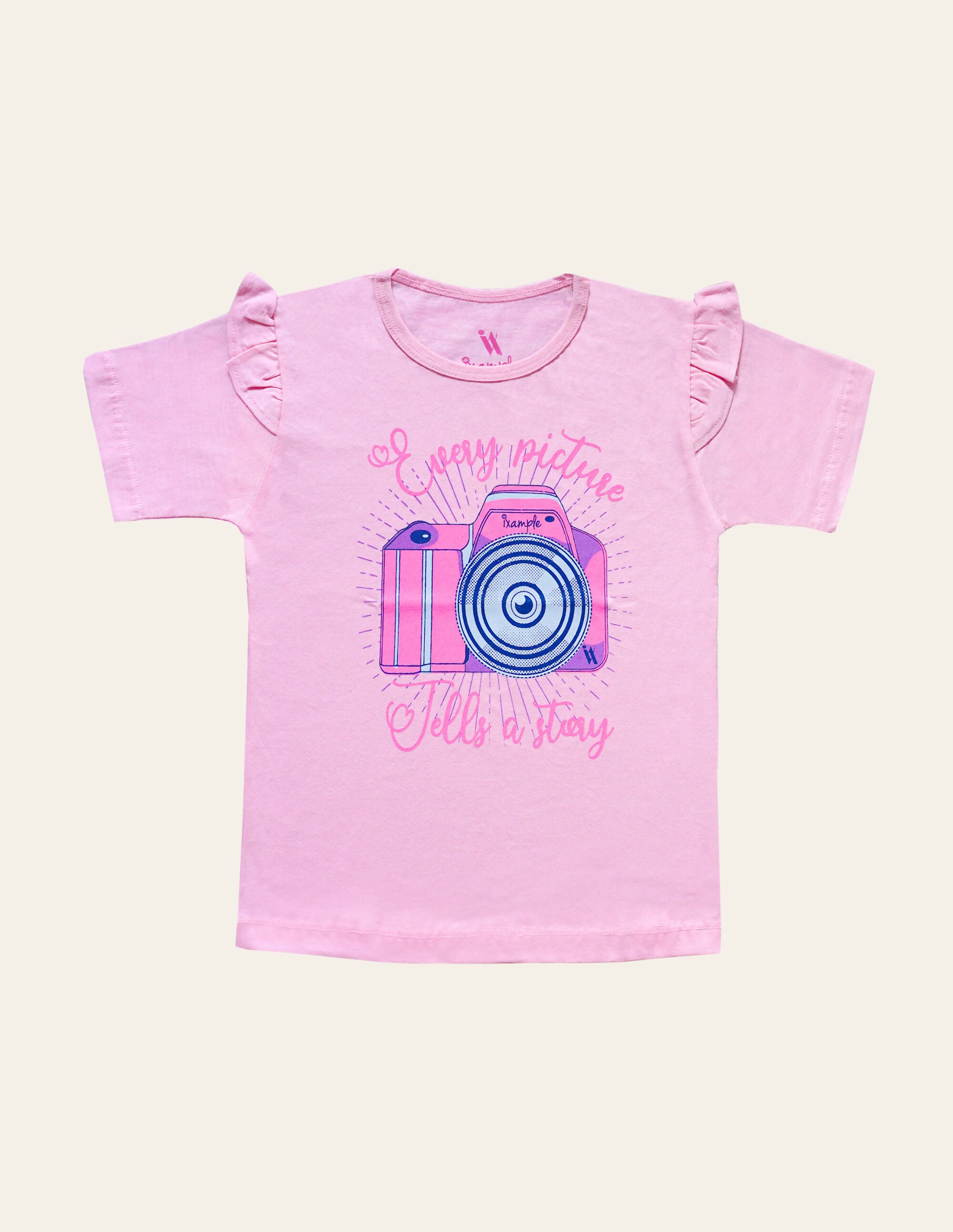 Pink graphic tee is crafted from soft cotton jersey with added frilled sleeves.