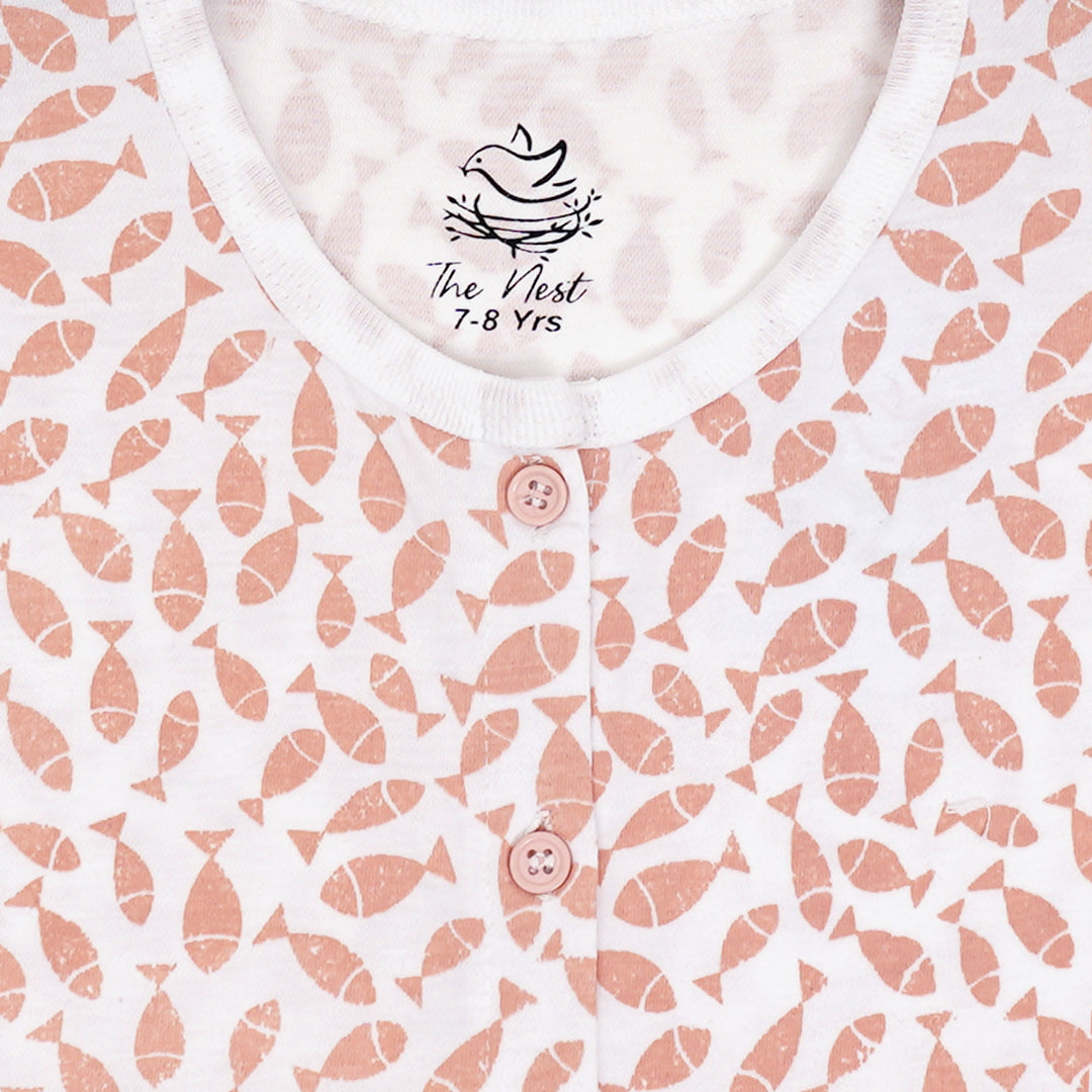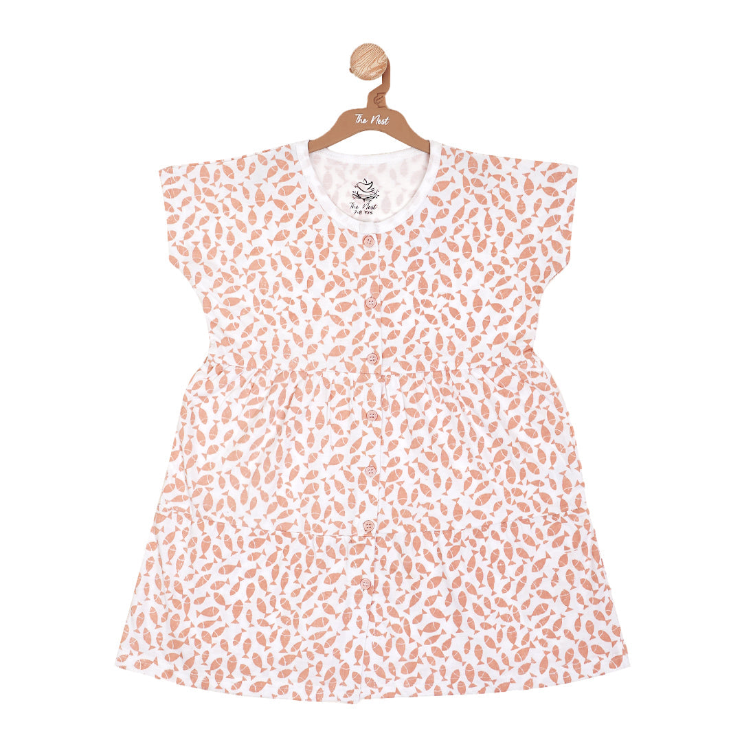 Featuring three-tiered hem detail, along with a cute minimalistic print, our coral charm frock is the most adorable pick for your little girl for days-out this summer. Made from soft and breathable single jersey fabric, it locks moisture out of the body to keep your baby’s skin protected against rash and soreness. The versatile colors along with the cute button details, add more charm to this adorable ensemble.