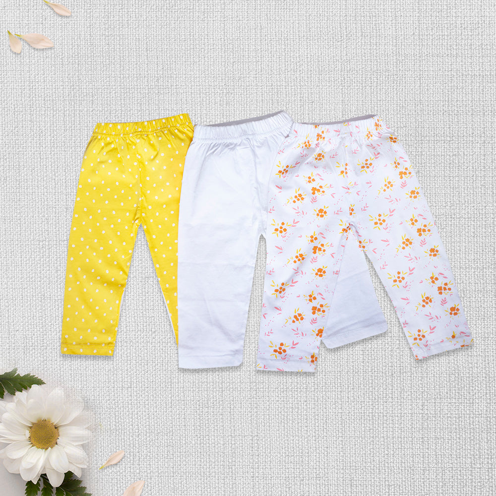 Introducing our Flower Garden Pajamas in a pack of three. While the plain white one is as soft as a cloud and perfect for cozy mornings, the sunshine yellow pajama with polka dots makes the playtime more enjoyable, just like in a field of cheerful dandelions. The third one is sprinkled with orange and purple flowers, which makes nighttime more magical with sweet dreams.