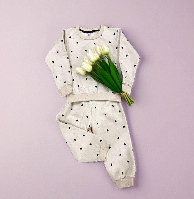 Whether it’s a family outing or a relaxed day at home, the Off White Heart Print Co-Ord Set is a must-have winter essential for kids who love both comfort and fashion.
