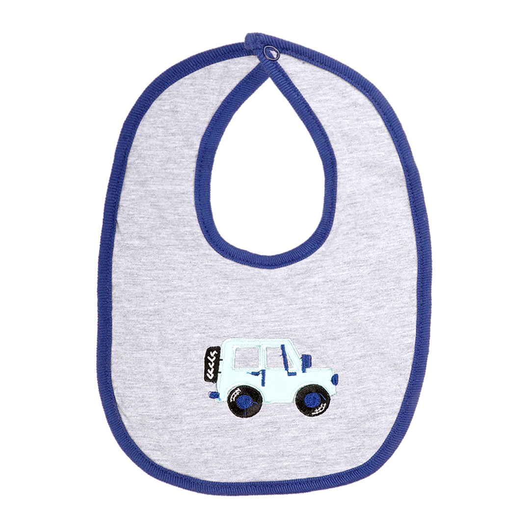 Keep your little one clean and stylish during mealtime with our heather grey bib featuring a playful embroidered car. Made from highquality materials, this bib is designed to be both durable and comfortable for your baby. The snap closure ensures a secure fit, while the machine-washable fabric makes for easy cleaning. The neutral heather grey color and adorable car embroidery make this bib a versatile accessory that can be coordinated with any outfit