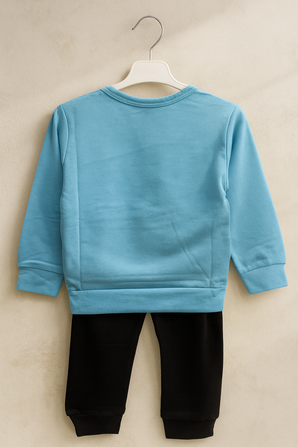 This kids tracksuit is designed for comfort and style, featuring a bold CREW style screen print on the front. The set includes a cozy sweatshirt with ribbed cuffs and hem, plus a functional draw cord detail for a sporty touch. Paired with matching jogger pants, it’s perfect for everyday wear, playtime, or casual outings. The screen print adds a trendy vibe, making it a fun and fashionable choice for active kids.