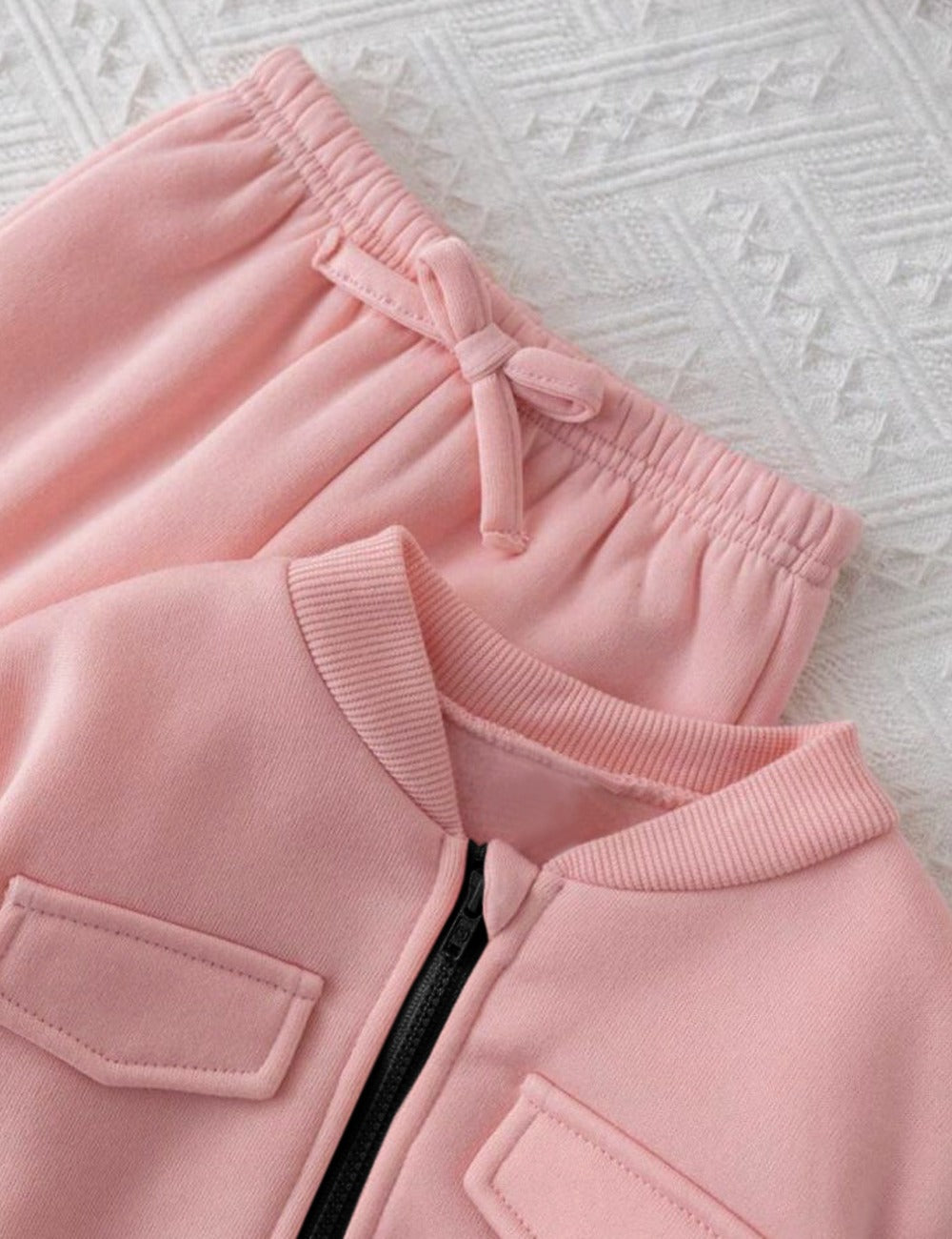 Baby Pink Mini Style Zip-Up Fleece Tracksuit for Kids