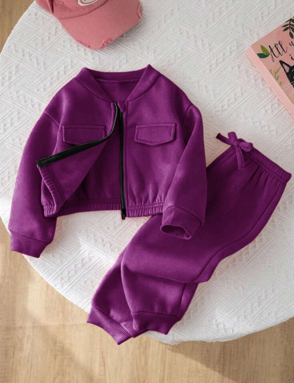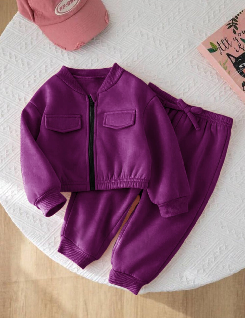 Purple Vibes Mini Style Zip-Up Fleece Tracksuit for Kids